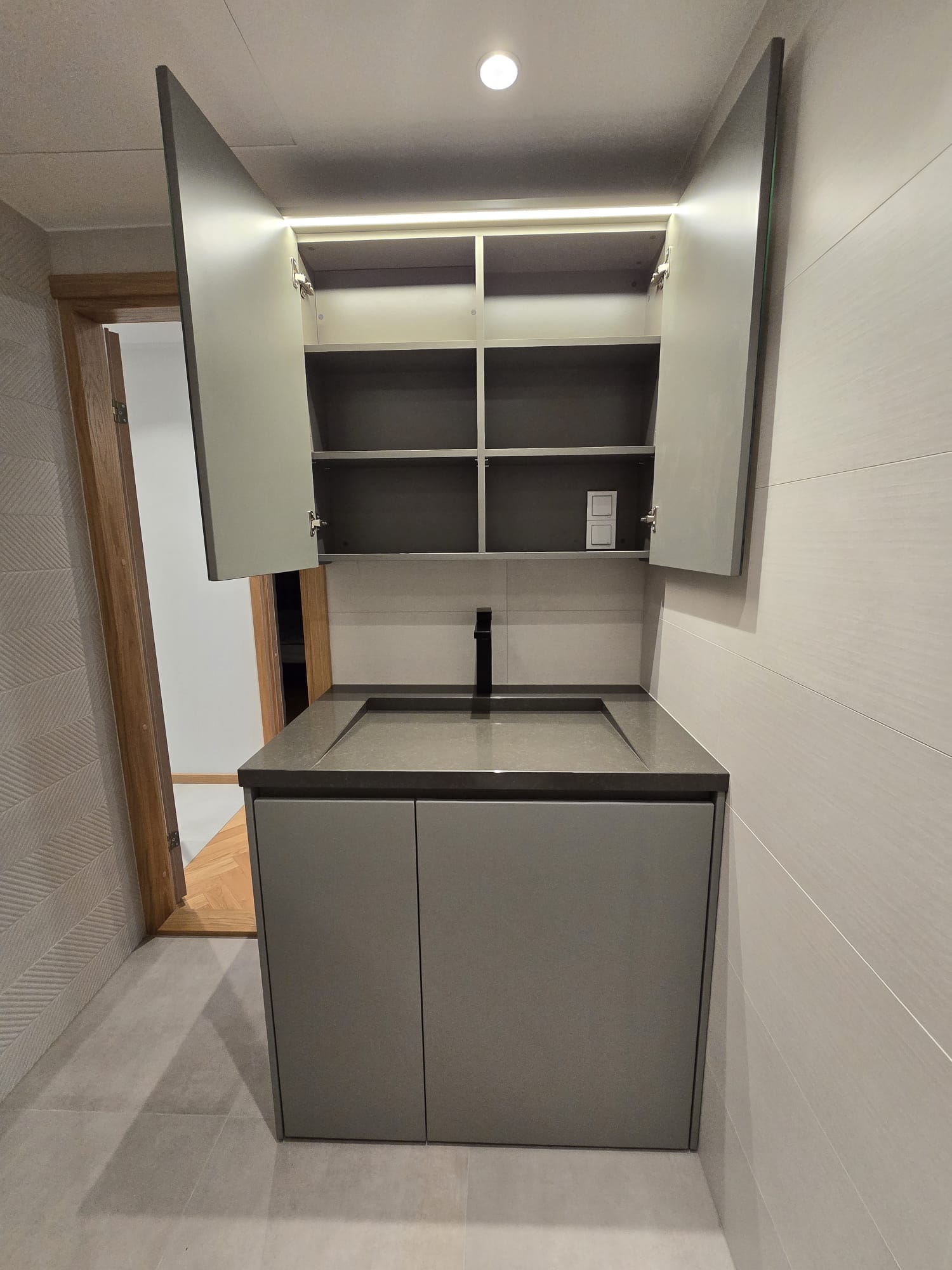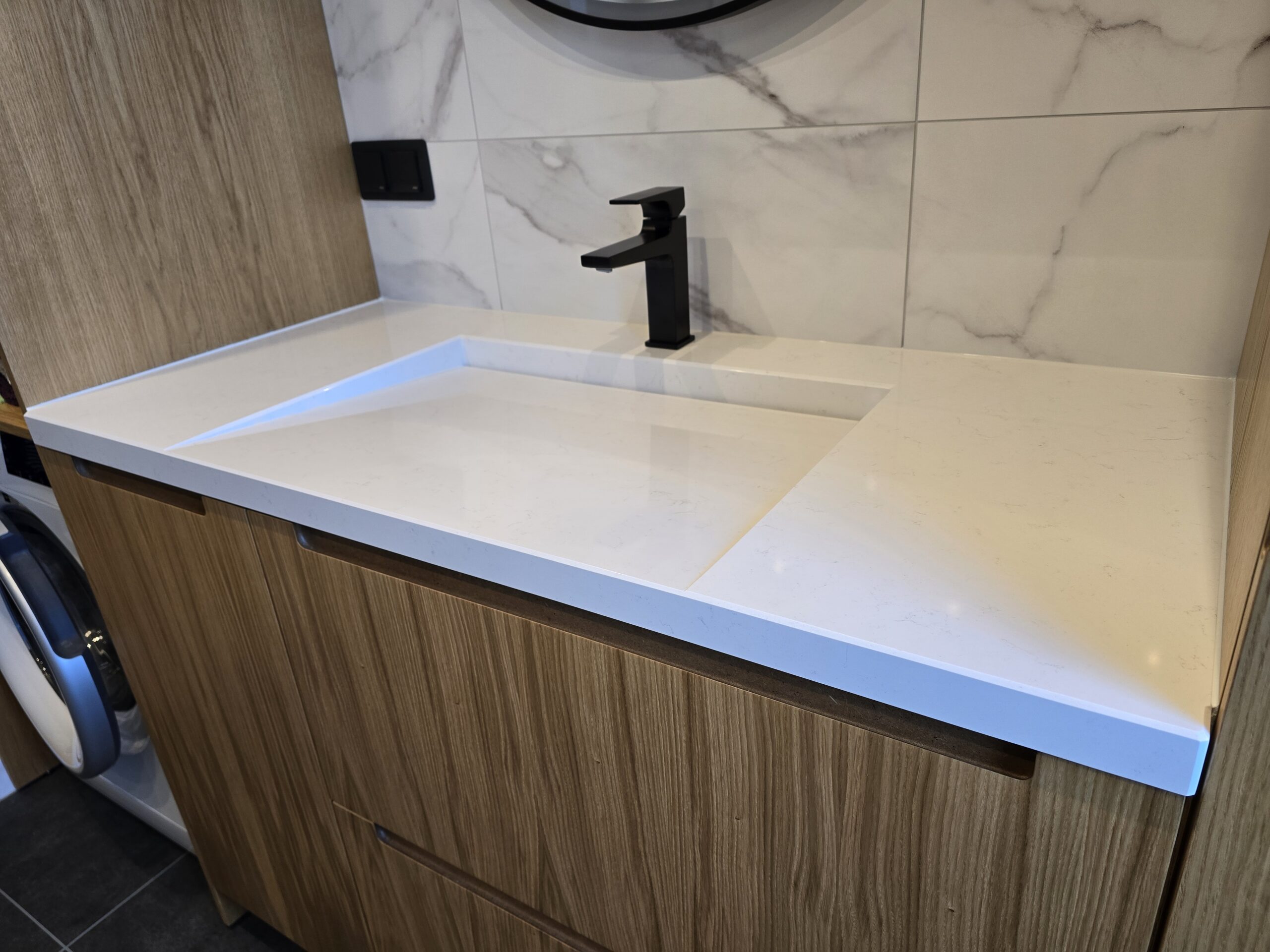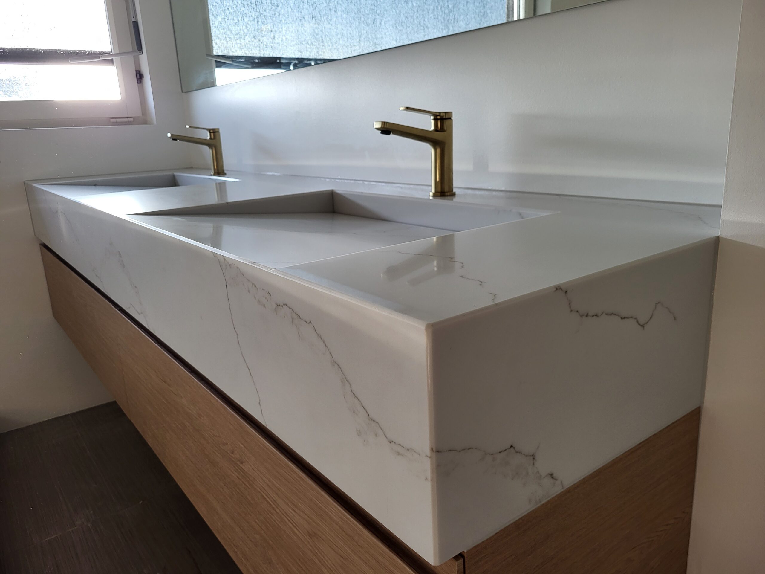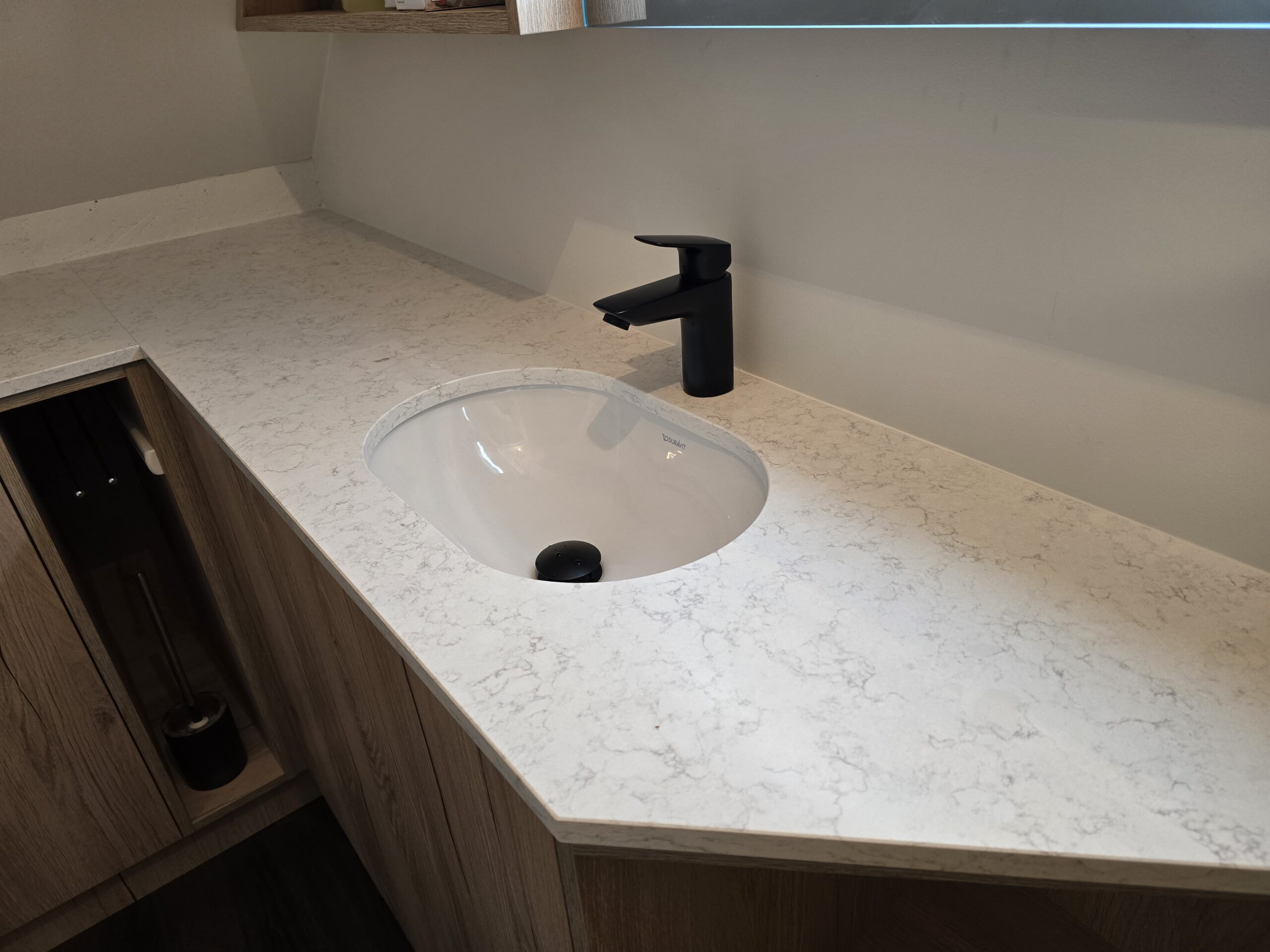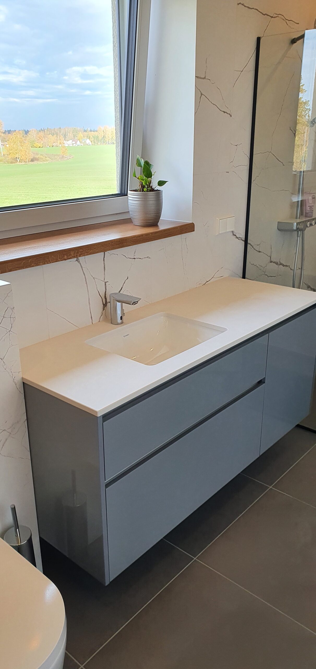 • Vannitoatasapinnad: Eritellimusel valmistatud töötasapinnad, mis on vastupidavad ja kergesti hooldatavad, sobides ideaalselt niiskesse keskkonda.