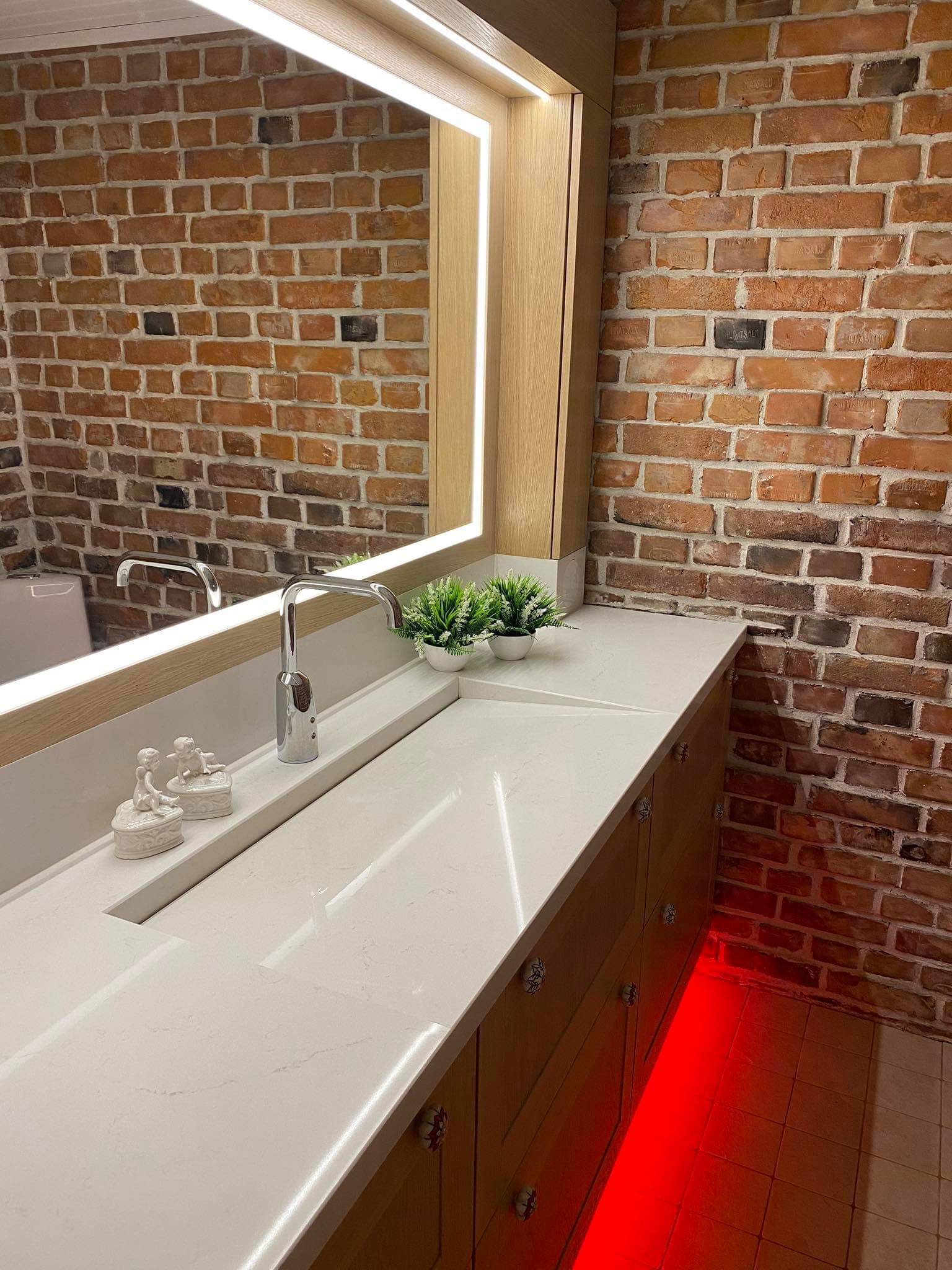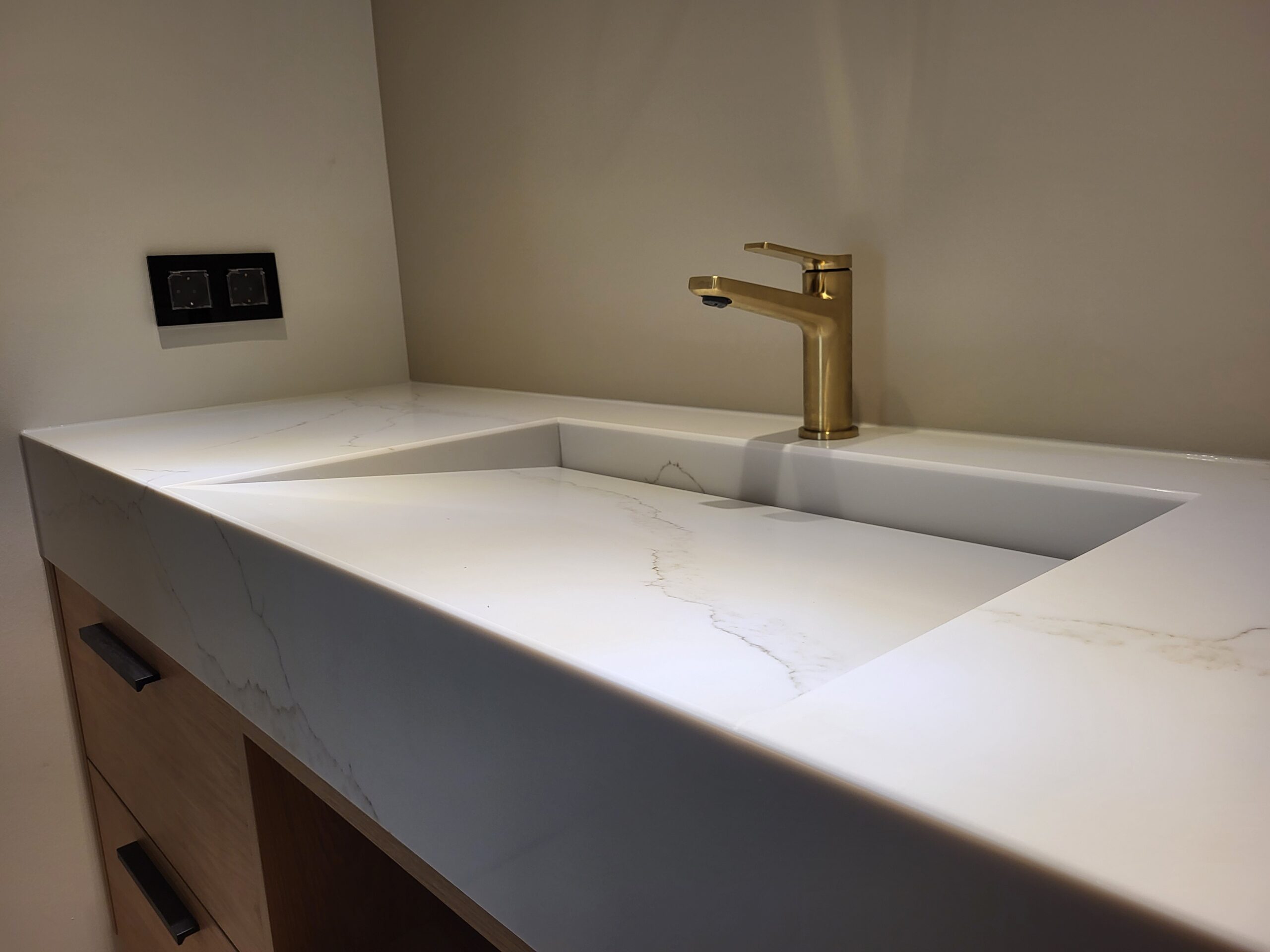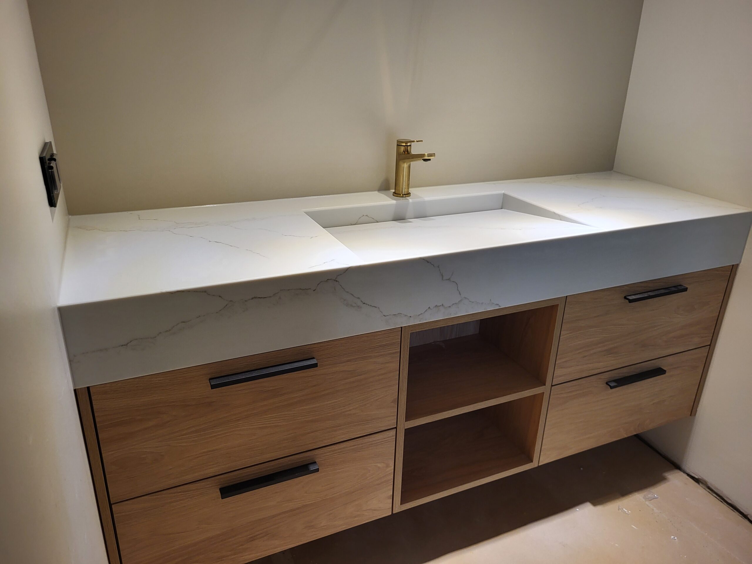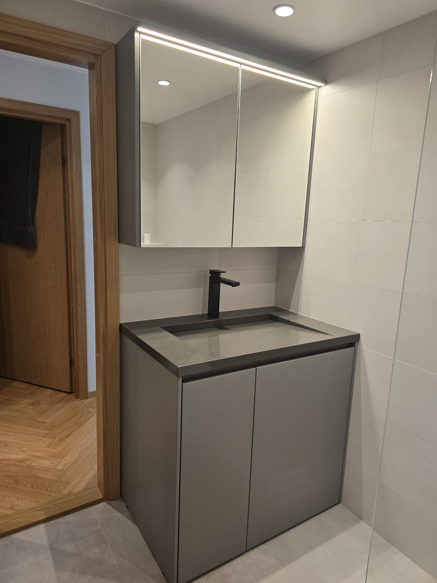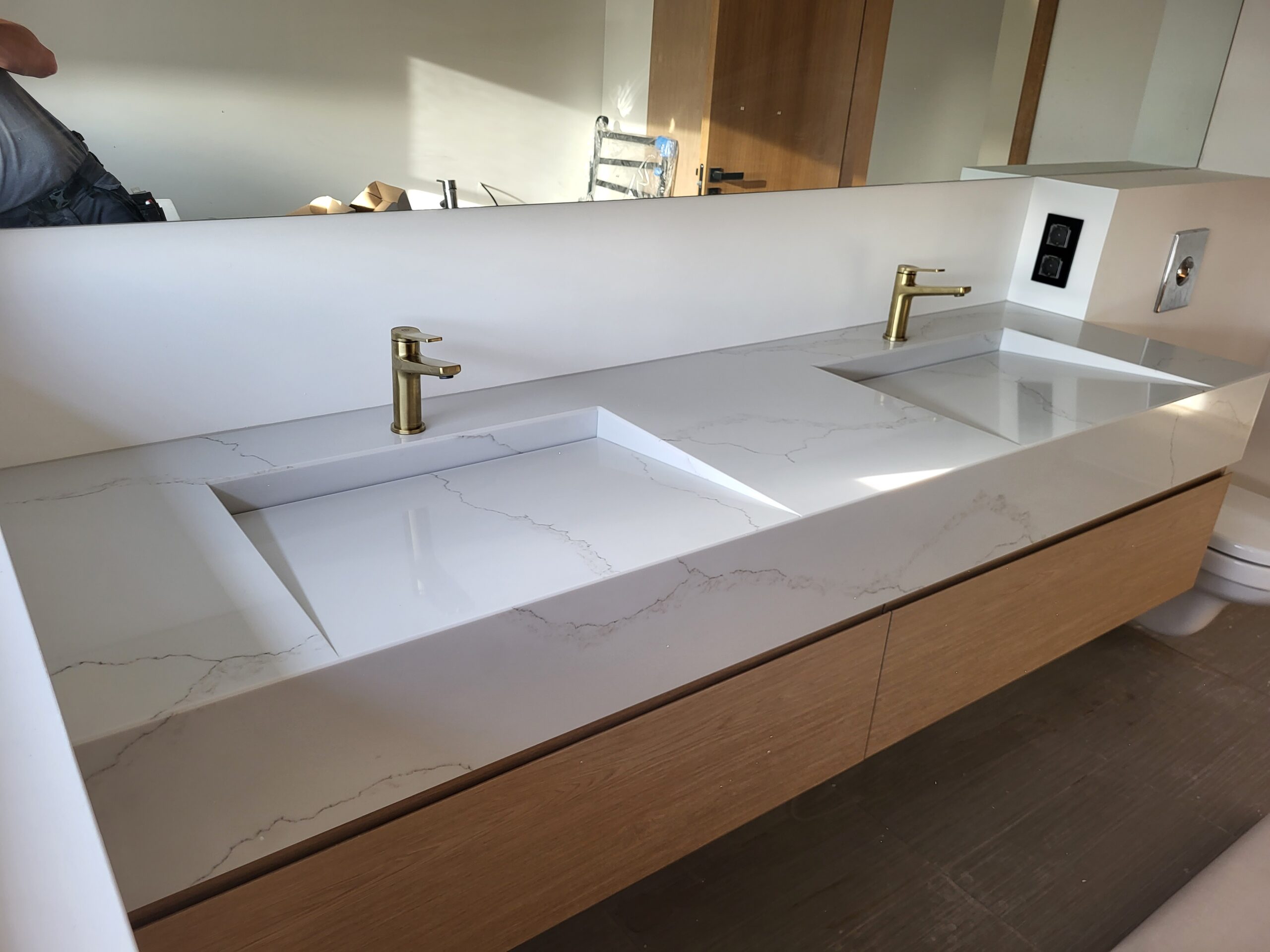 • Vannitoatasapinnad: Eritellimusel valmistatud töötasapinnad, mis on vastupidavad ja kergesti hooldatavad, sobides ideaalselt niiskesse keskkonda.
